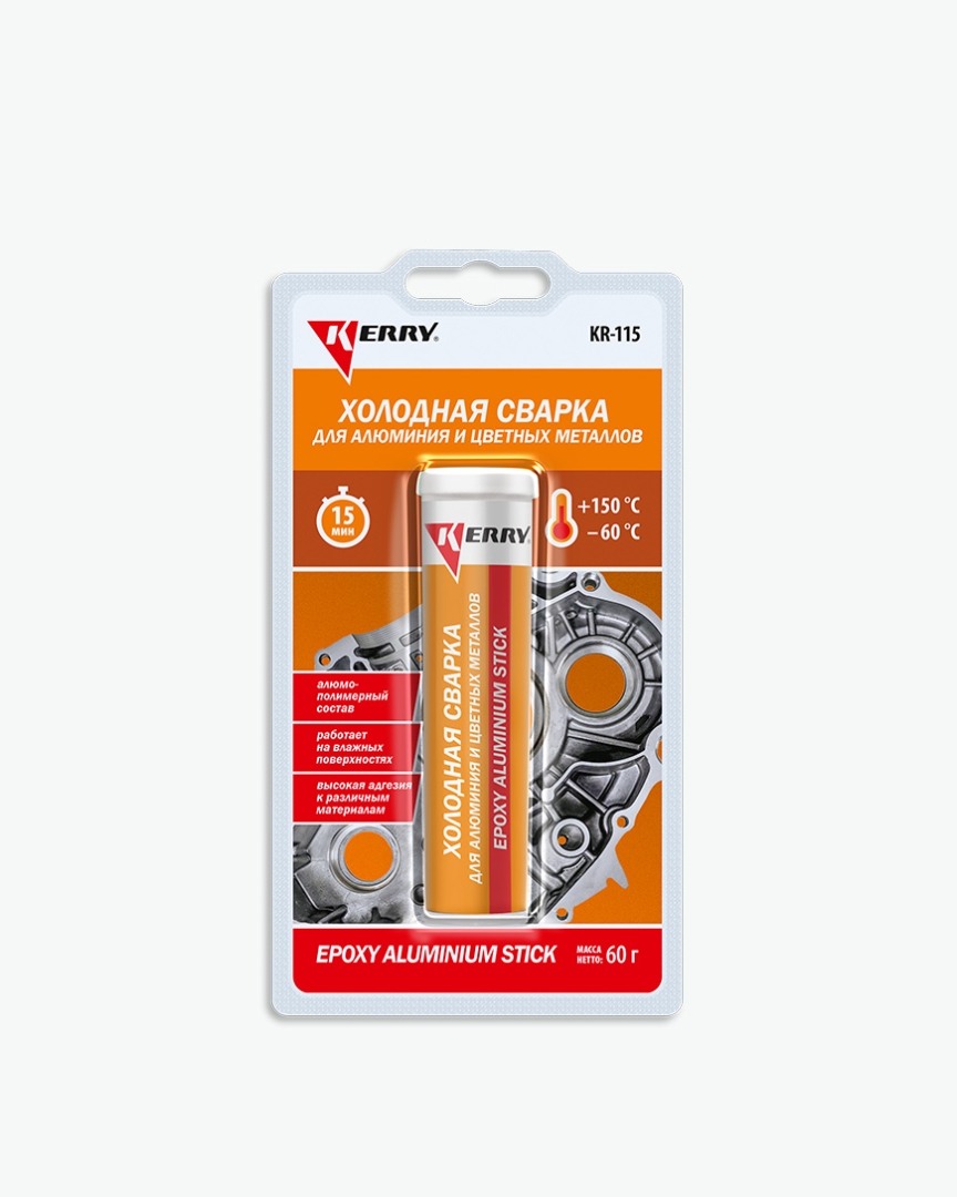 Металлопластилин алюмонаполненный для алюминия и цветных металлов KERRY® KR‑115 позволяет быстро, прочно и герметично отремонтировать повреждённое изделие или склеить необходимые элементы, в том числе испытывающие значительные статические и динамические нагрузки. Устойчив к воздействию воды, антифриза, бензина.