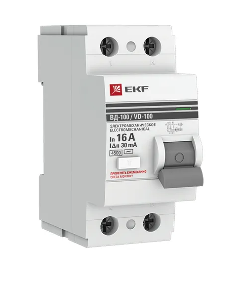 Устройство защитного отключения УЗО ВД-100 2P 16А/30мА (электромеханическое) EKF PROxima