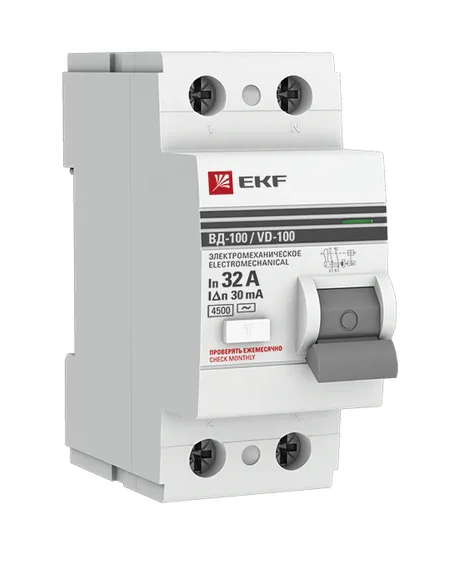 Устройство защитного отключения УЗО ВД-100 2P 32А/30мА (электромеханическое) EKF PROxima