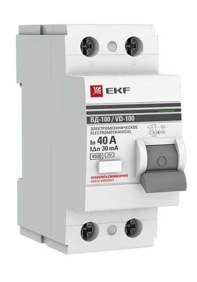 Устройство защитного отключения УЗО ВД-100 2P 40А/30мА (электромеханическое) EKF PROxima