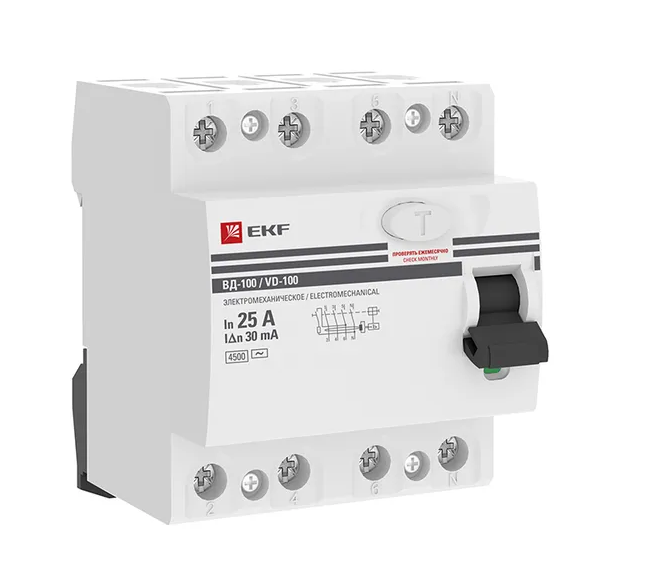 Устройство защитного отключения УЗО ВД-100 4P 25А/30мА (электромеханическое) EKF PROxima