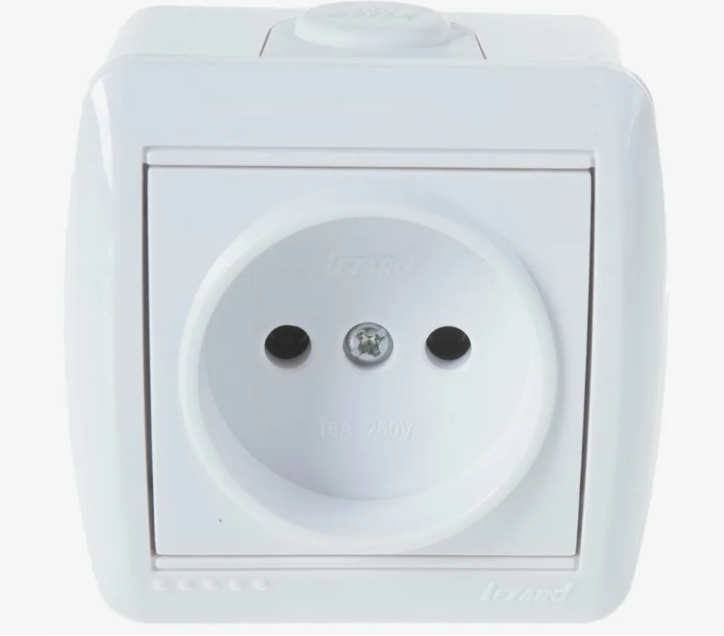 Розетка 1-м ОП Ната 16А IP20 без заземл. керамика бел. LEZARD 710-0200-121