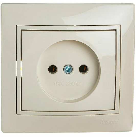 Розетка 1-м СП Мира 16А IP20 без заземл. со вставкой керамика крем. LEZARD 701-0303-121