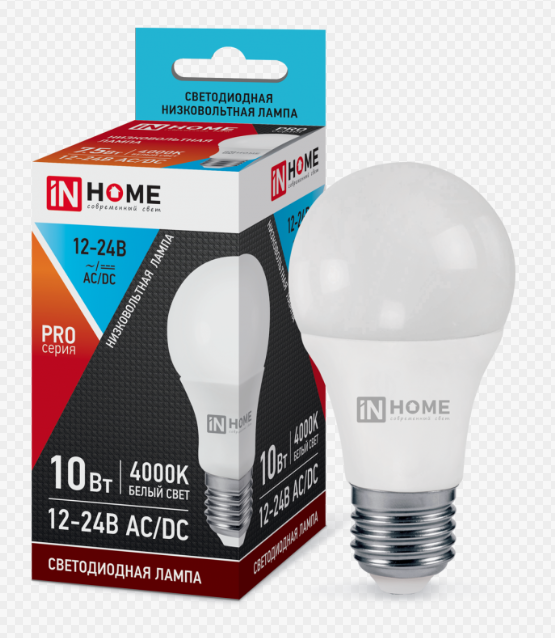 Лампа светодиодная LED-МО-PRO 10Вт 12-24В Е27 4000К 800Лм низковольтная IN HOME 4690612031507