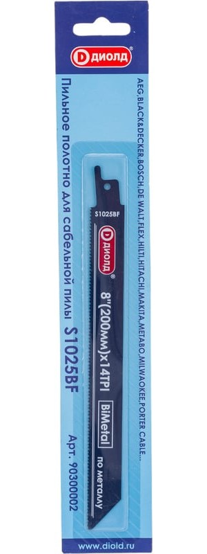 Полотно пильное для сабельной пилы по металлу S1025BF,BIM,14 TPI,200мм, 1,2мм ДИОЛД