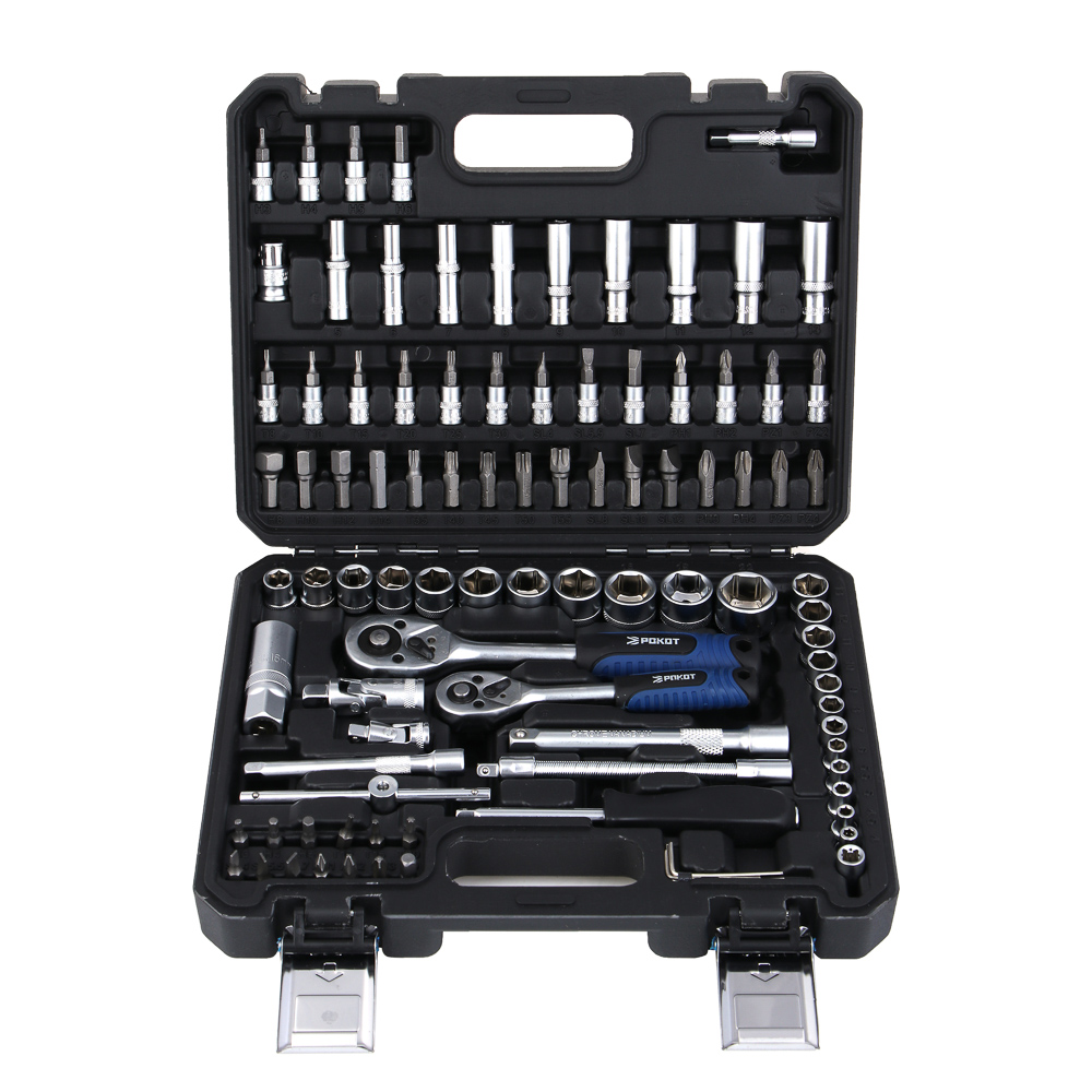 Набор инструментов РОКОТ из 94 предметов в мини кейсе включает все самое необходимое для ремонта автомобиля: различные типы бит, удлинители и переходники, трещоточные ключи и многое другое. Незаменим в гараже, в автомастерской и в дороге. Все элементы выполнены из качественной закаленной стали, имеют высокую износостойкость, оптимальную твердость, устойчивость к повышенным нагрузкам. Удобный жесткий пластиковый кейс для хранения с надежным замком имеет компактный размер и удобен для транспортировки в багажнике автомобиля.