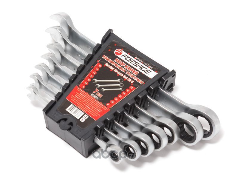Набор ключей комбинированных трещоточных 7пр. (8,10,12,13,14,17,19мм) в пластик держателе Forsage
